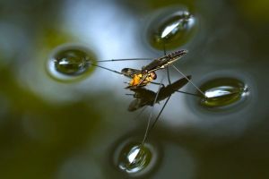 A water strider is able to walk on the surface of the water with ease by spreading it’s already light body weight. Photo: National Geographic/John Moran.